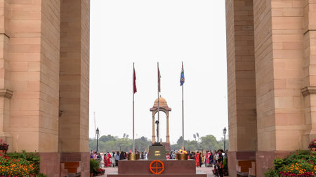 DELHI, INDIA - MARCH 13, 2019: afternoon close up of the flame of the immortal soldier at india gate in new delhi