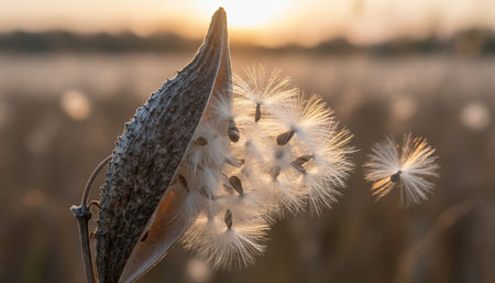 A Butterfly and White Milkweed