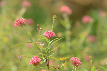 Pink flowers in garden with blurred back ground.