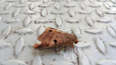 Angle shades moth on white wall. Phlogophora meticulosa.