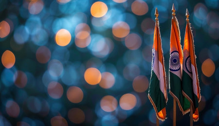 Indian flags on bokeh background with copy space for text.