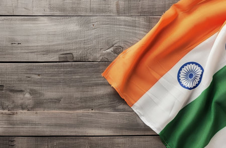 India Flag on wood texture background concept for 15 august independence day wallpaper, Happy 26 january republic day Banner decoration mock up product for diwali baisakhi traditional festival