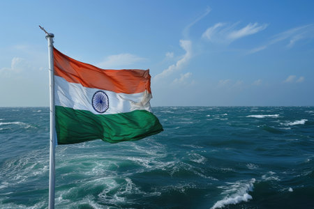 Indian flag waving by the sea