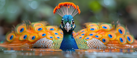 Peacock displaying its vibrant feathers, closeup, majestic and colorful