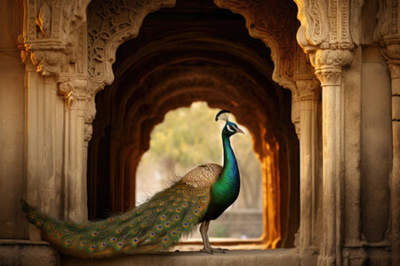 Peacock in Amber Fort, Jaipur, Rajasthan, India, A captivating image of a majestic exotic bird in city, AI Generated