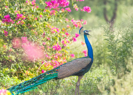 peacock. A bird in the wild. The national Park of Sri Lanka