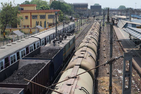 Vijayawada, INDIA - January 6 2019 : Train tracks through one of the most busiest railway stations at Vijayawada junction, India