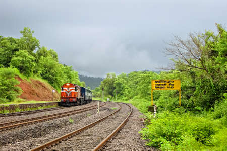 Gokarna Karnataka India January 25, 2019 View of the southen Indian Konkan railway between Gokarna and Mangalore in the evening