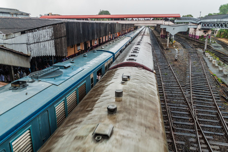 COLOMBO, SRI LANKA - JULY 12, 2016: Trains in Maradana train station in Colombo.