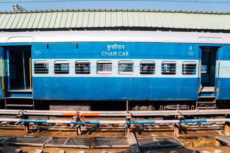 Jaisalmer, India - Circa March 2018. View of sleeper coach on the train station.