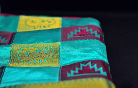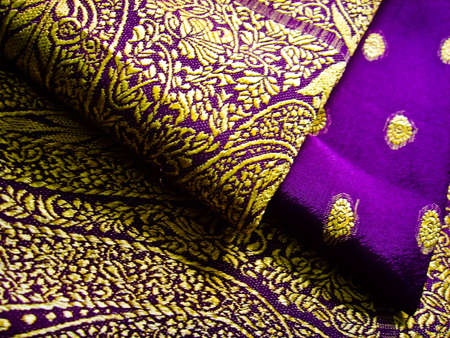 Traditional benarasi silk sari on a background with use of selective focus.