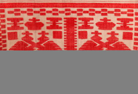 Handmade embroidery on the fabric of the Ukrainian national costume