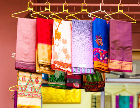 Indian sari in the local market, Puttaparthi, India. With selective focus