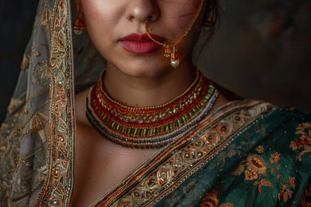 indian woman wearing traditional clothes and jewellery, closeup portrait