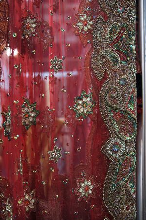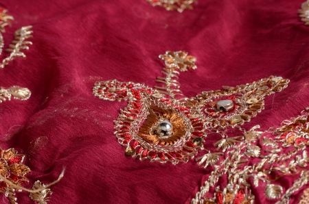 Red sari fabric closeup detail