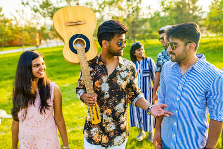 oriental ethnic cheerful friends at pic-nic in sammer park