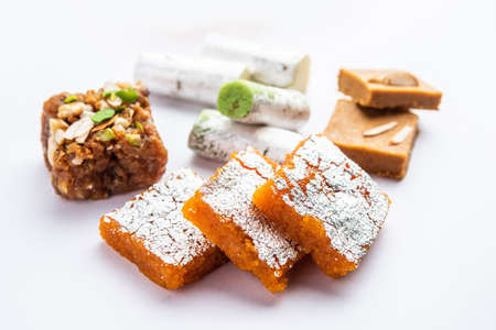 Milk powder barfi also known as Mava burfi, white Khoya burfi or Barfee, Indian Sweet food