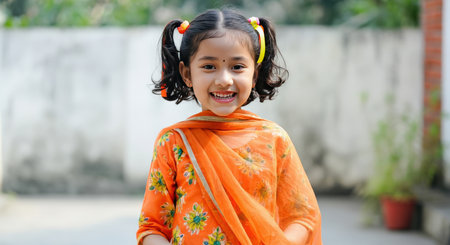 Cheerful Indian Kid Smiling Brightly, Showcases Joyful Expression and Cute Charm