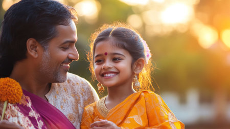 Indian family with traditional clothing celebrating diwali or hindu festival