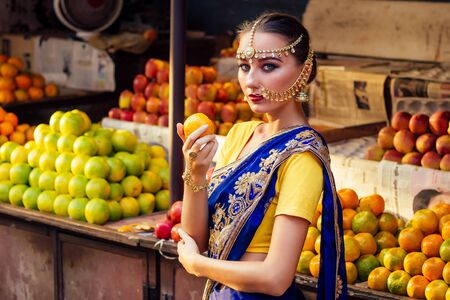 Portrait of a young beautiful Indian woman in saree, outdoors