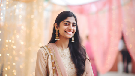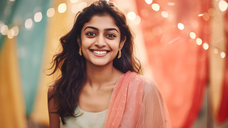 Portrait of a beautiful indian woman in traditional clothes smiling and looking at camera