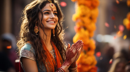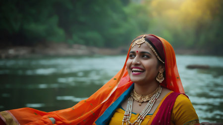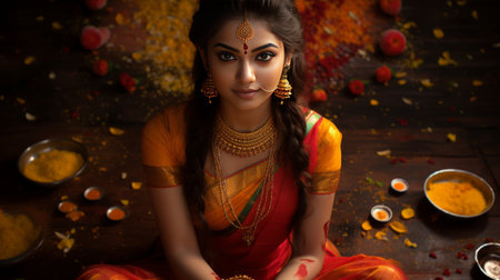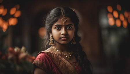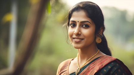 Beautiful Indian lady showcasing traditional fashion with elegance and charm. AI generated.