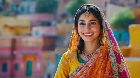 Indian woman in traditional clothes smiling and looking at the camera with a smile