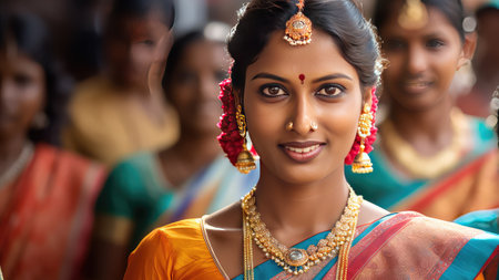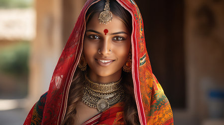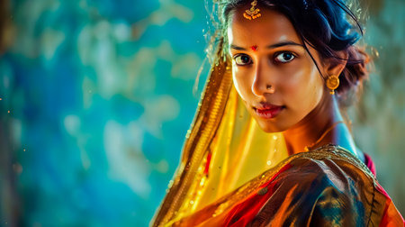 Portrait of a beautiful Indian woman in sari and jewelry