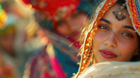 Teej festival - Colorful Couple in Traditional Clothing Celebrating, Space for Text