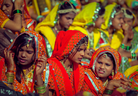 PUSHKAR, RAJASTHAN, INDIA - CIRCA NOV 2012: Traditional Fair in Pushkar. Indian brides