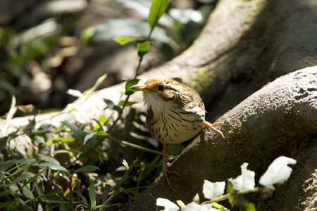Puff-throated Babbler, Pellorneum ruficeps on the log.