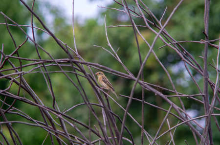 Picture of a finch sitting in a bushes - selected focus