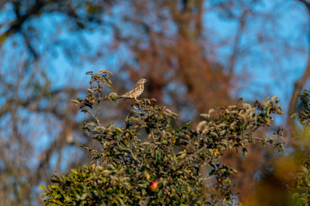 Tree Pipit (Anthus trivialis).Wild bird in a natural habitat.