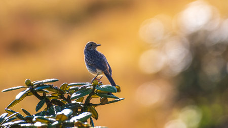 Small bird perched on a tree branch at golden hour.