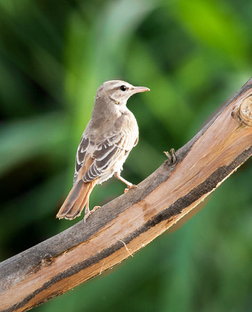Photo of a Nightingale standing on a fallen tree branch at morning