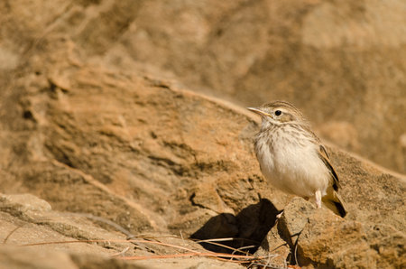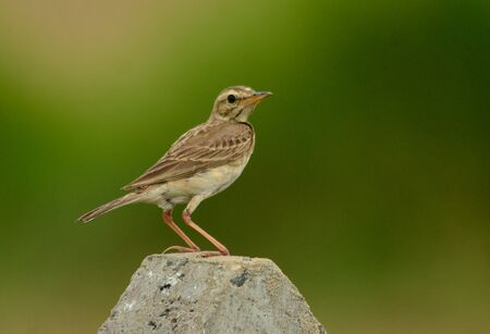 beautiful Rosy Pipit Anthus roseatus standing on the rock