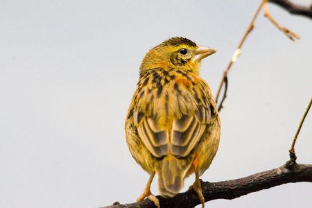 Eurasian pipit (Emberiza citrinella) perched on a branch