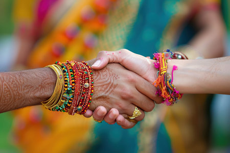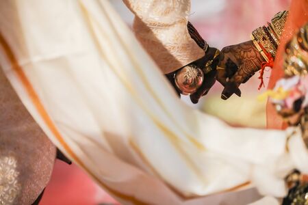 Indian couple's hand in hand in a wedding, Indian marriage traditions