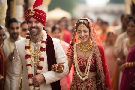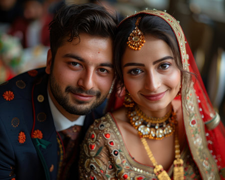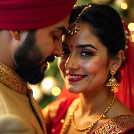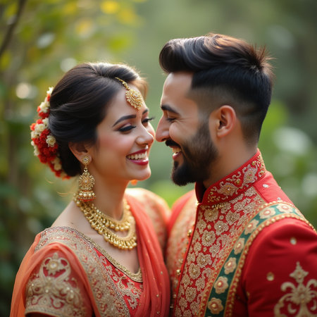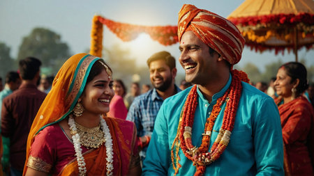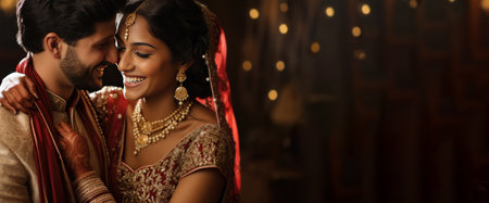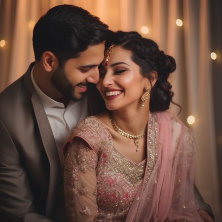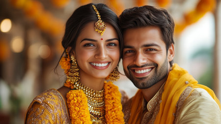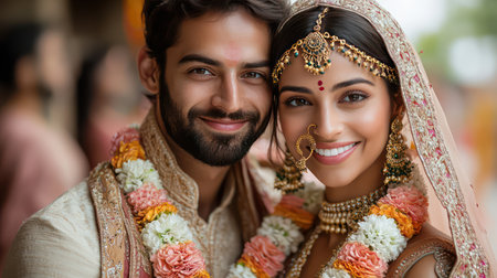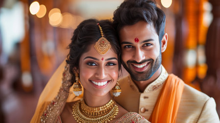 Joyful Indian Couple Celebrates in Traditional Dress, Ideal for Wedding or Cultural Event Promotions