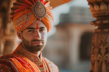 Generative AI Image of Indian Man Prince Wearing Traditional Clothes in Palace