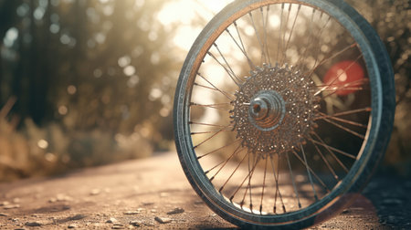 A detailed close-up image of a weathered car wheel showing accumulation of dust and dirt, captured in warm light, highlighting texture and design.