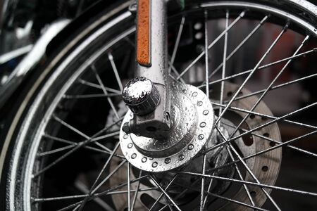 Munich, Germany - june 17, 2012: BMW Motorbike Braking System Front View Shown in BMW Museum in June 17, 2012, Munich, Republic of Germany