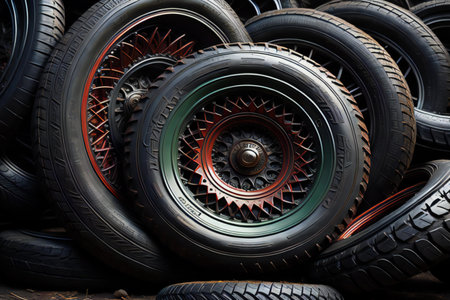 A close-up view of a rusty old car wheel abandoned in a junkyard. This image captures the beauty of decay and the passage of time in an urban environment.