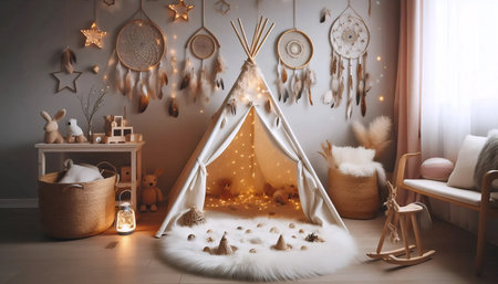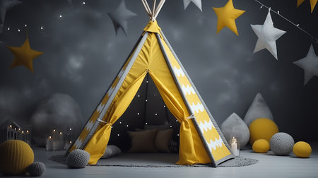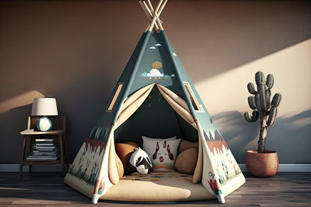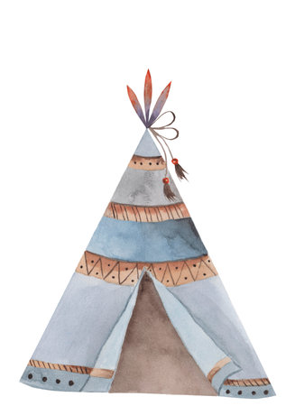 watercolor illustration tent wigwam ideological, boho for kids. interior sticker, sticker. enjoy