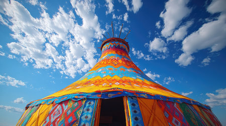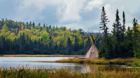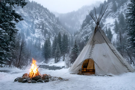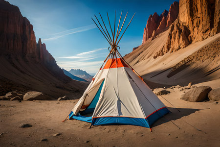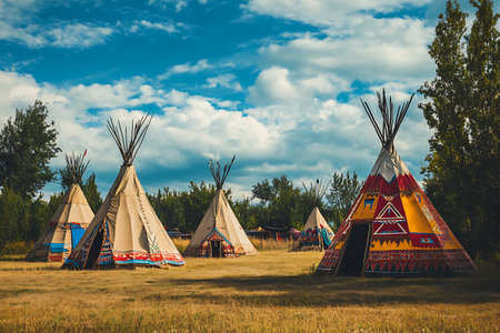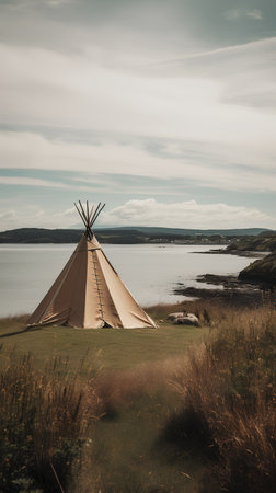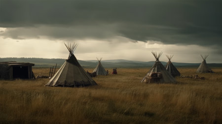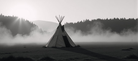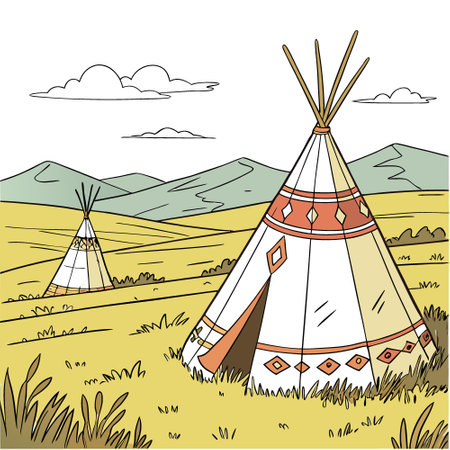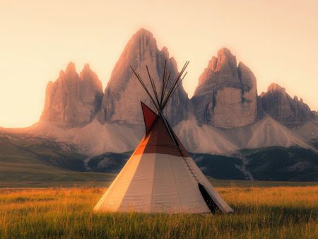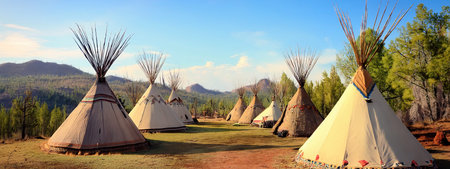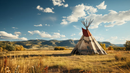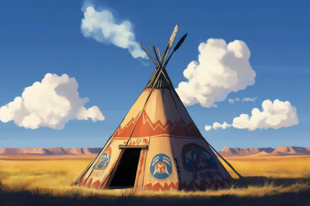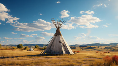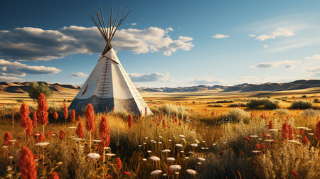 Teepee in the prairie of Yellowstone National Park. Wyoming. First Nations tips on the open prairies of North America. . AI generated. Vector icon
