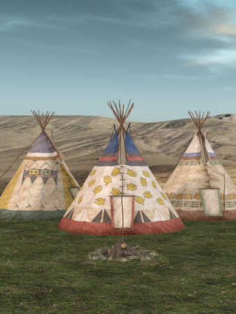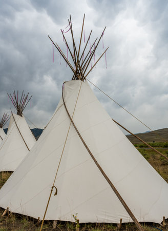 Two teepees representative of those used by the Blackfeet Indians on the Great Plains of Montana, USA.