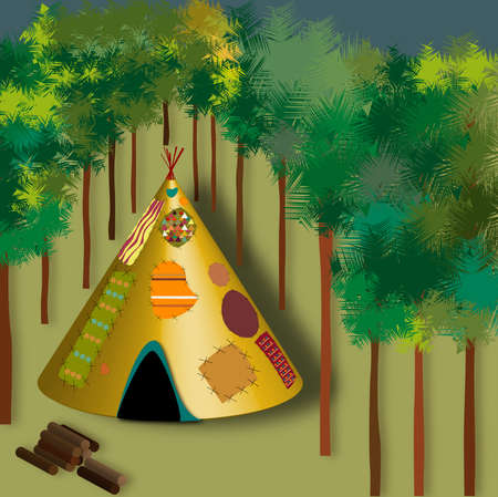 Vector Illustration of Indian House Tepee (also known as Wigwam).