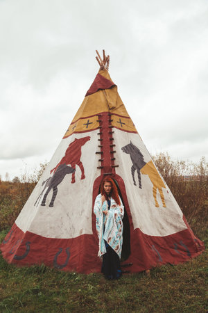 Teepee, tent or wigwam Native American dwelling isolated on white background. raster