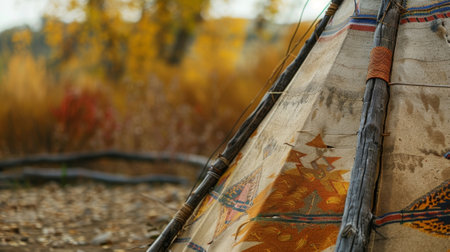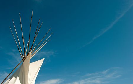 A closeup view of a native tee pee during an annual powwow held during the late springtime.