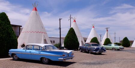 Holbrook, AZ USA - October 29, 2016: The Wigwam Motel with its tipee style rooms and vintage cars is a popular tourist destination in this small desert town near the Petrified Forest.